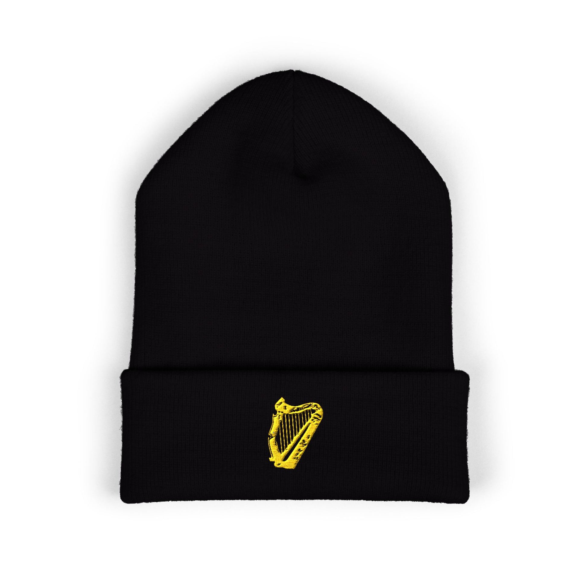Irish St Patrick's Day Embroidered Gold Harp Cuffed Ireland Erin go Bragh Beanie Hat