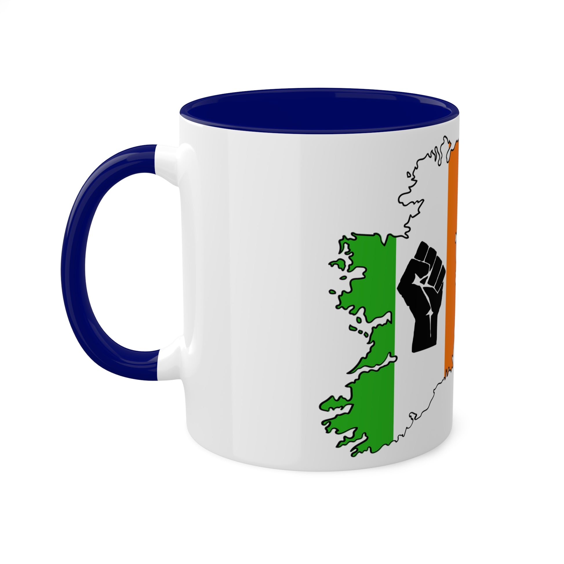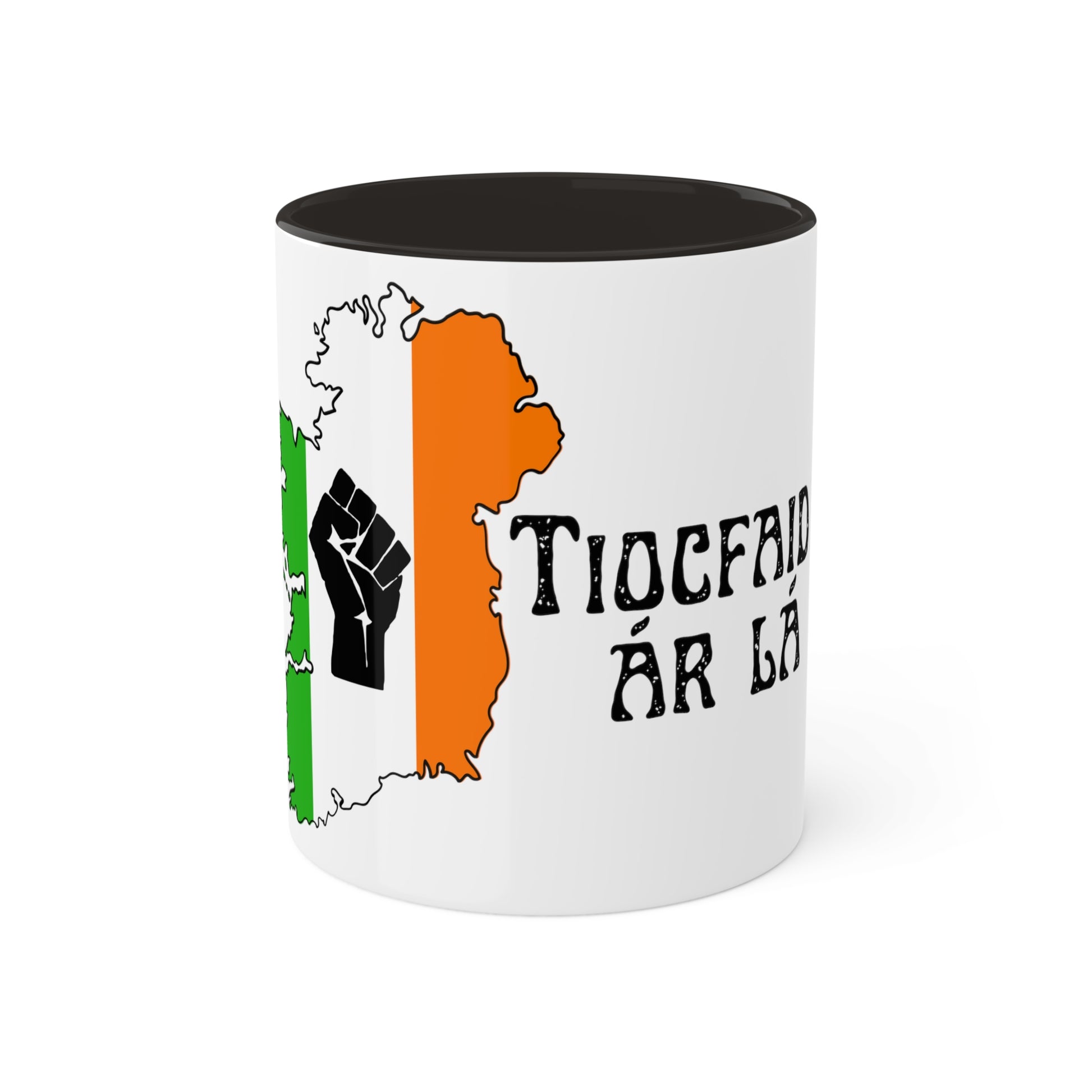 Irish Tricolour United Ireland Tiocfaidh ár lá with Black Fist Erin go Bragh Irish Republican Colourful Mug Available in 10 colour options, these mugs hold 11oz of your favourite pick-me-up juice and come with a coloured handle and interior. The glossy finish adds a classy touch that perfectly complements the high-fidelity artwork print.
